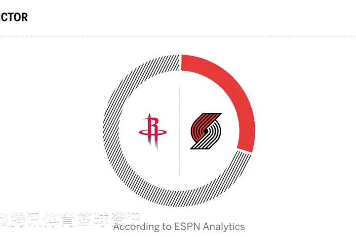 北京时间1月8日上午11:00,火箭队将在客场挑战开拓者。ESPN给出预测,预计火箭队客场赢球的概率高达70.4%,开拓者赢球的概率只有29.6%。